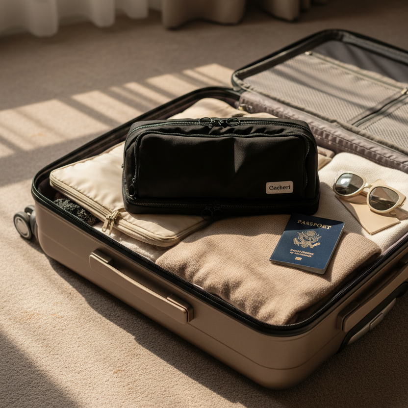 Cacheri keeps everything in one organized place - your hair tools, jewelry, and beauty essentials - so you can unpack once and feel instantly at home, wherever you are.