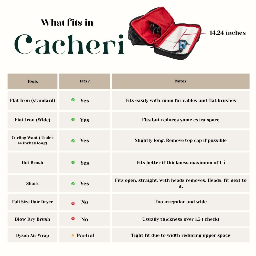 Cacheri keeps everything in one organized place - your hair tools, jewelry, and beauty essentials - so you can unpack once and feel instantly at home, wherever you are.