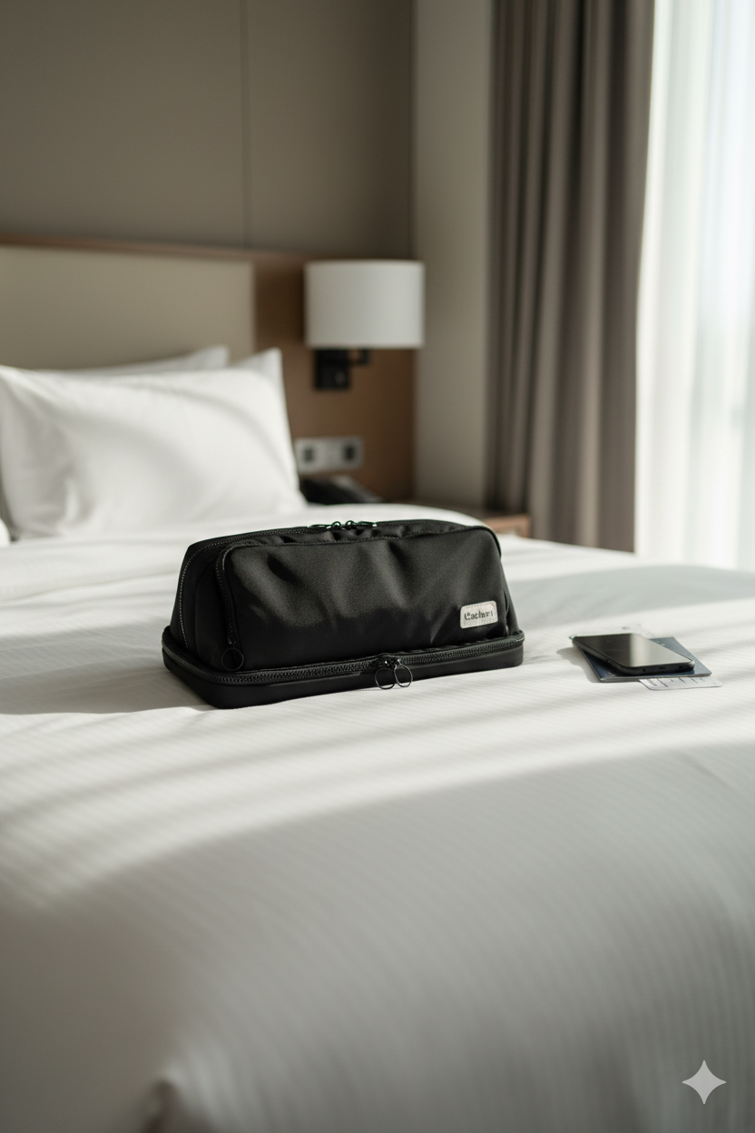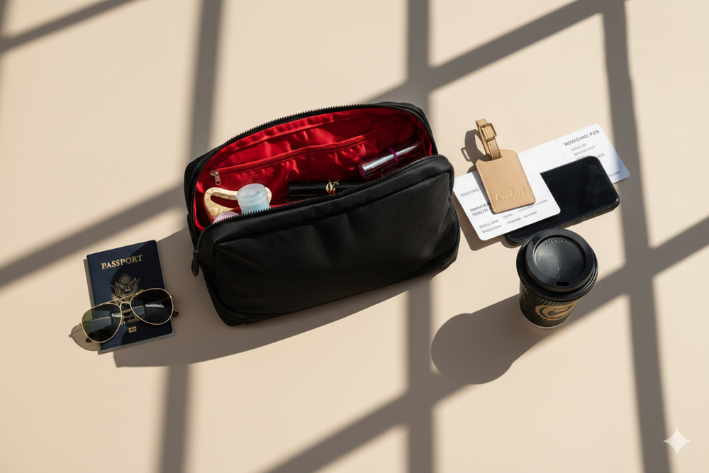 From morning touch-ups in Rome to late-night check-ins in Bali - Cacheri keeps every essential in its place.